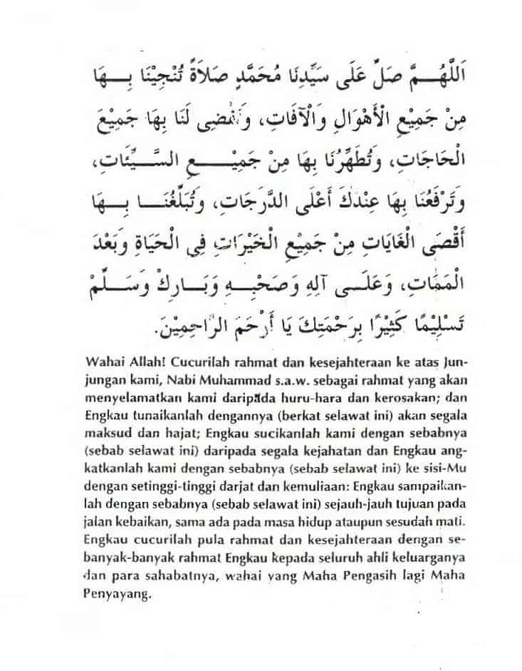 Wahai Allah! Cucurilah rahmat dan kesejahteraan ke atas junjungan kami Nabi Muhammad s.a.w, sebagai rahmat yang akan menyelamatkan kami daripada huru-hara dan kerosakan,