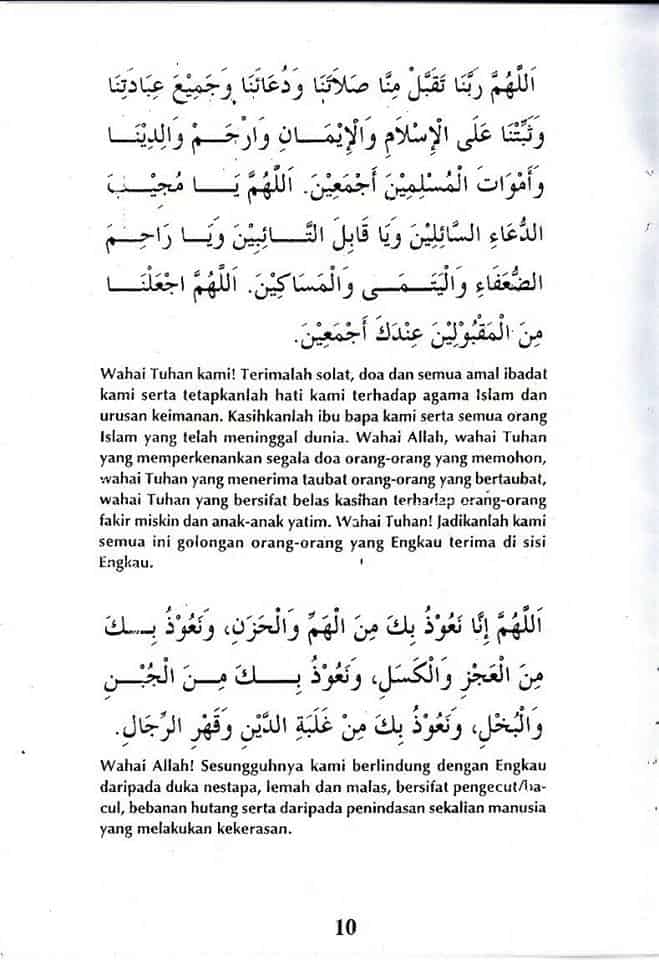 Kasihkanlah ibu bapa kami serta semua orang Islam yang telah meninggal dunia. Wahai Allah, wahai Tuhan yang memperkenankan segala doa orang-orang yang memohon, wahai Tuhan yang menerima taubat orang-orang yang bertaubat, wahai Tuhan yang bersifat belas kasihan terhadap orang-orang fakir miskin dan anak-anak yatim.