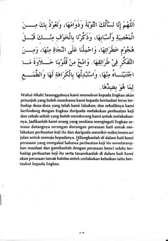 Sesungguhnya kami memohon kepada Engkau akan petunjuk yang boleh membawa kami kepada bertaubat terus terhadap dosa-dosa yang telah kami lakukan; dan sebaliknya kami berlindung dengan Engkau daripada melakukan perbuatan keji dan sebab-sebab yang boleh mendorong kami untuk melakukannya.